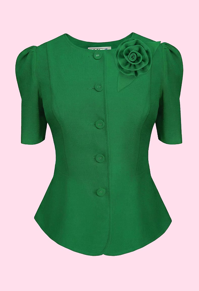 MÔ TẢ SẢN PHẨM: Áo kiểu cổ tròn, kết hoa, tay ngắn xếp ly.