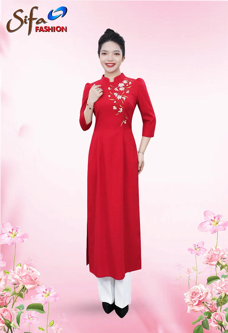 MÔ TẢ SẢN PHẨM: Áo dài cách tân cổ truyền thống, tay lỡ. Vẽ hoa nghệ thuật, kết hợp đính đá.