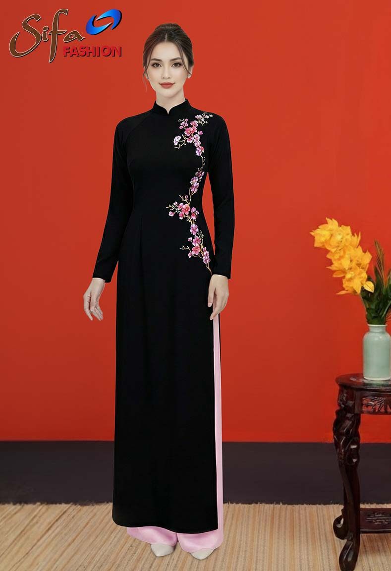 MÔ TẢ SẢN PHẨM: Áo dài cổ truyền thống lượn, vẽ hoa nghệ thuật, kết hợp đính đá.