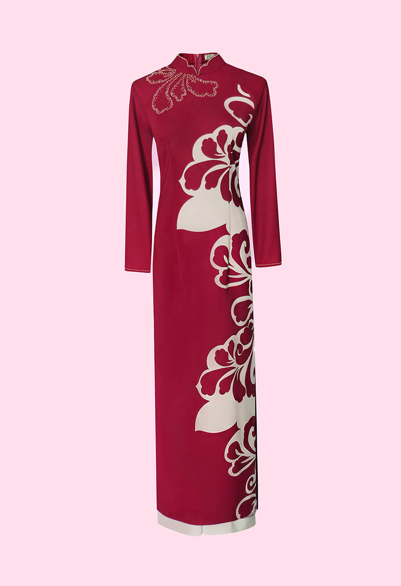 MÔ TẢ SẢN PHẨM: Áo dài cổ truyền thống lượn, thêu hoa cách điệu, tay dài.