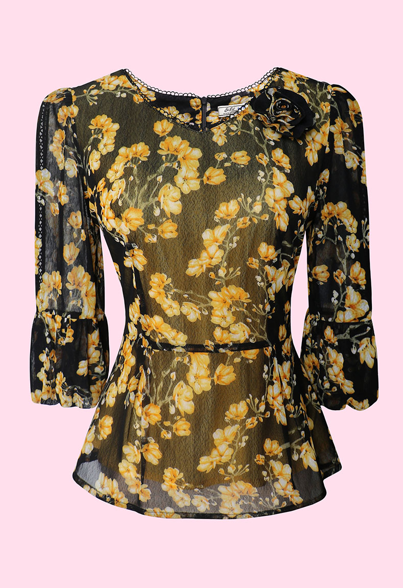 MÔ TẢ SẢN PHẨM: Áo được thiết kế với điểm nhấn nổi bật là cổ tim phối ren kết hợp đính bông mang đến vẻ đẹp nữ tính và duyên dáng. Tay áo dạng lồng đèn cùng với phần thân áo được rã eo xếp ly giúp tôn dáng, che đi những khuyết điểm một cách khéo léo mà vẫn giữ được sự thoải mái, trẻ trung cho người mặc.