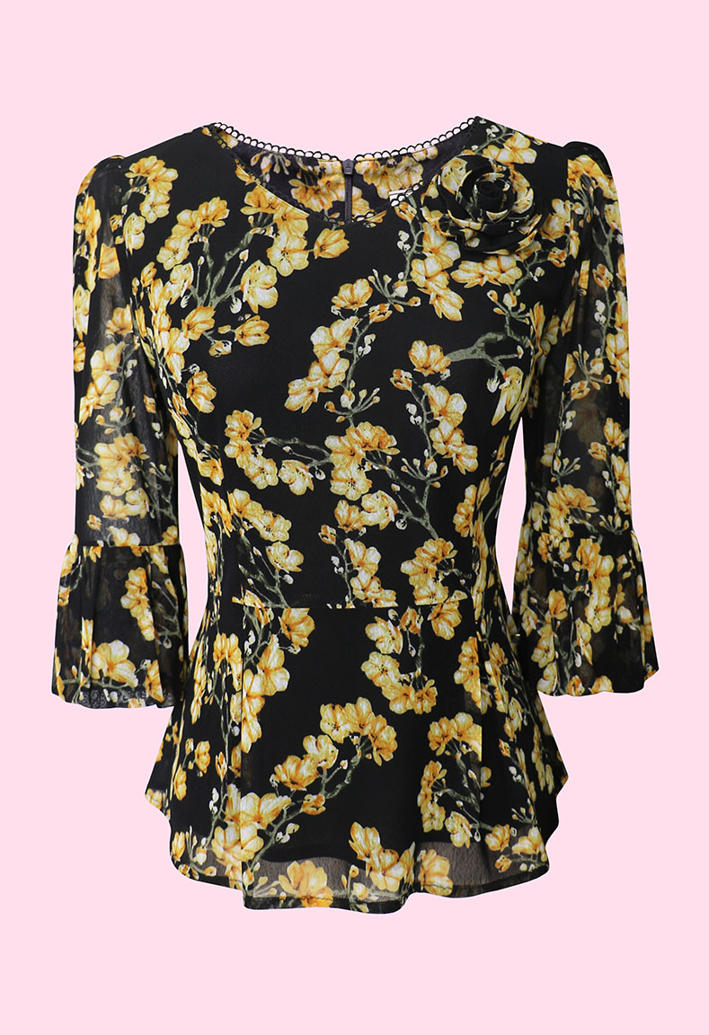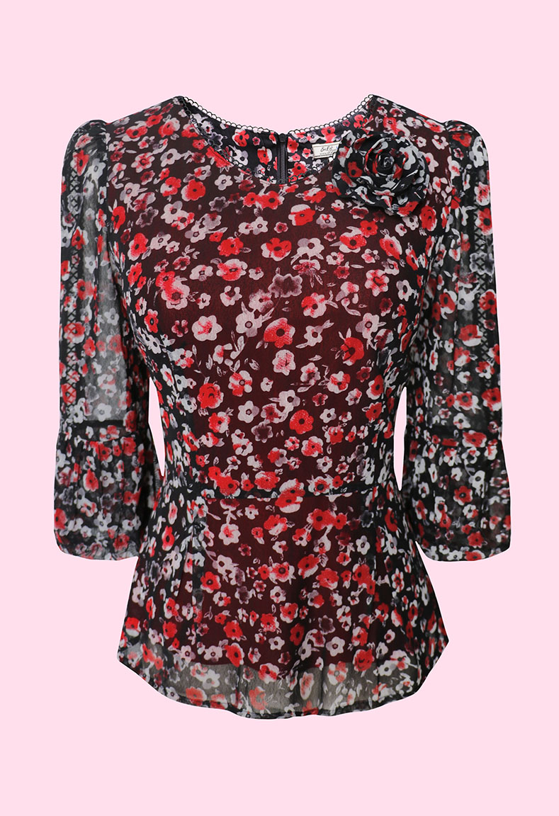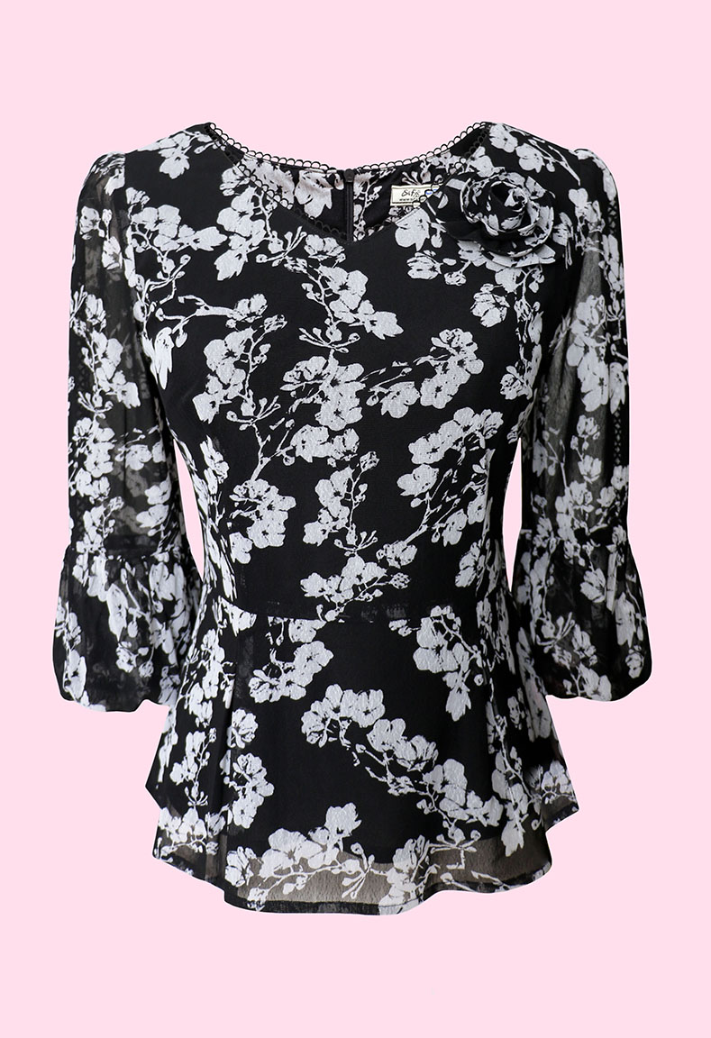 MÔ TẢ SẢN PHẨM: Áo được thiết kế với điểm nhấn nổi bật là cổ tim phối ren kết hợp đính bông mang đến vẻ đẹp nữ tính và duyên dáng. Tay áo dạng lồng đèn cùng với phần thân áo được rã eo xếp ly giúp tôn dáng, che đi những khuyết điểm một cách khéo léo mà vẫn giữ được sự thoải mái, trẻ trung cho người mặc.