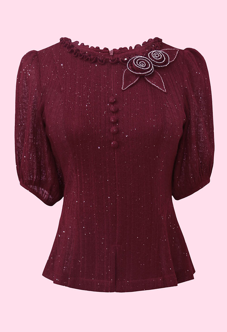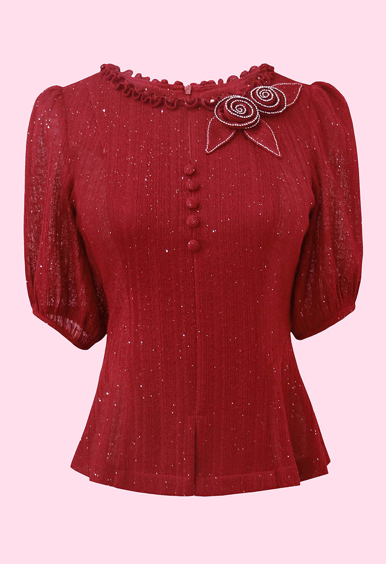 MÔ TẢ SẢN PHẨM: Áo được thiết kế cổ tròn xẻ V sang trọng và thanh lịch, tay ngắn phồng tạo cảm giác thoải mái và dễ chịu. Điểm nhấn đặc biệt là chi tiết đính hoa nghệ thuật mang lại nét sang trọng, duyên dáng cho người mặc