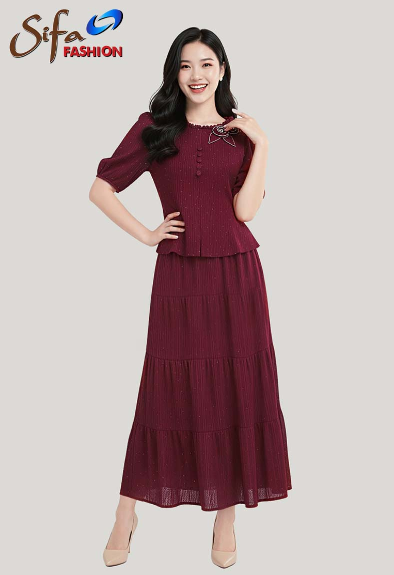 Bộ áo cổ tròn váy xòe sang trọng - Váy