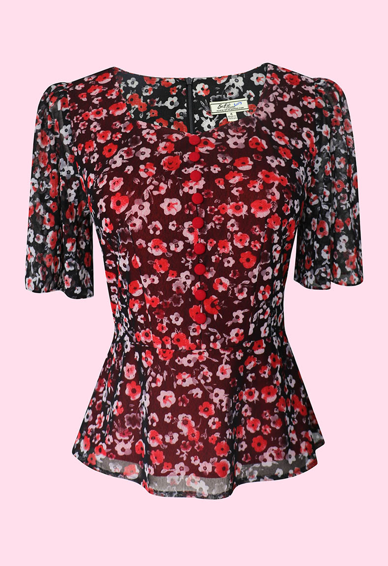 MÔ TẢ SẢN PHẨM: Áo được thiết kế cổ vuông tim trẻ trung và thanh lịch, tay ngắn loe tạo cảm giác thoải mái và dễ chịu. Điểm nhấn đặc biệt là chi tiết kết nút tinh tế, mang lại nét xinh xắn, duyên dáng cho người mặc.