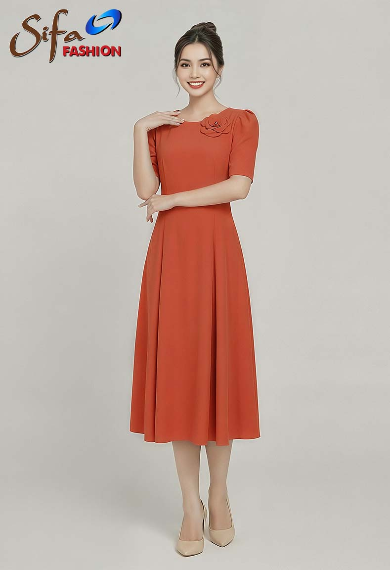 Đầm cổ tròn dáng xòe