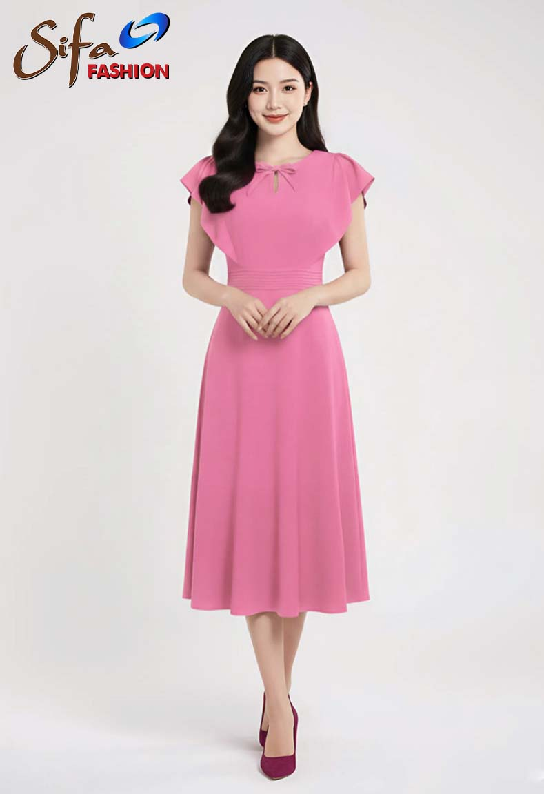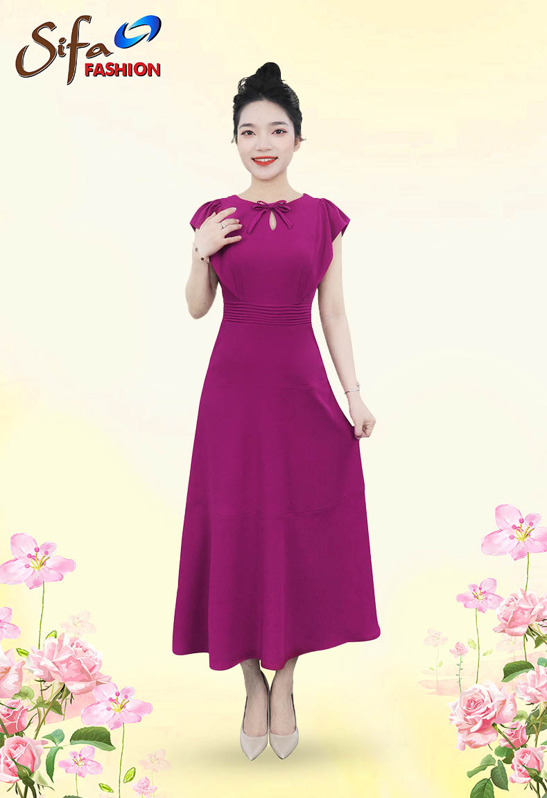 MÔ TẢ SẢN PHẨM: Đầm cổ tròn xẻ giọt nước, tay cánh tiên, dáng xòe.
