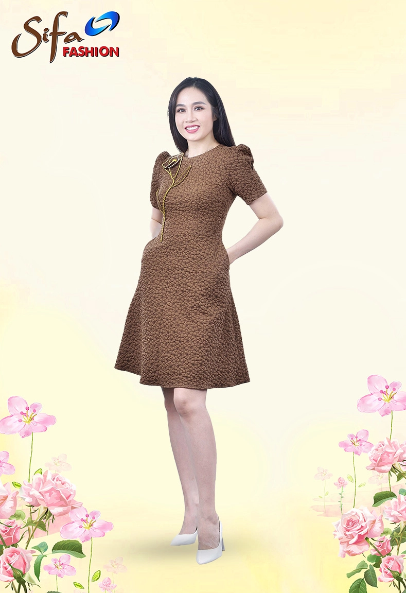 MÔ TẢ SẢN PHẨM: Đầm cổ tròn dáng ôm tùng xoè chữ A, cổ được thiết kế cân đối kín đáo, hoạ tiết hoa ẩn được thực hiện vẽ tay thủ công tỉ mỉ kết hợp hoa vải cầu kì, tay ngắn đỉnh tay nhún làm cho đôi thon gọn hơn, cửa tay ôm vừa vặn.